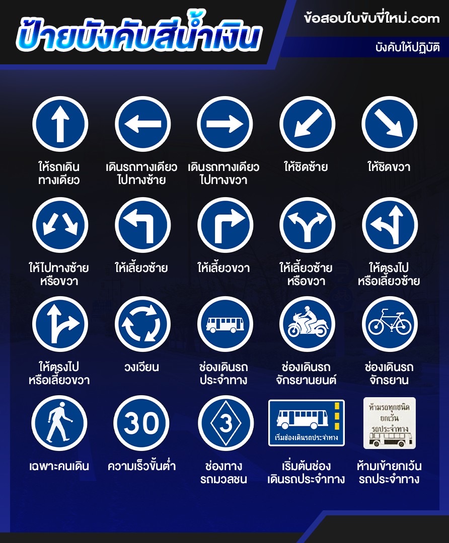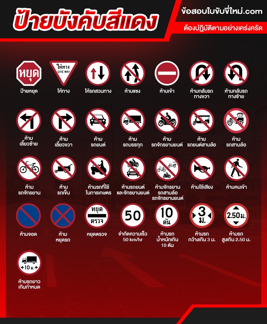 × ประวัติการทำข้อสอบ เลือกหมวดข้อสอบแบบอ่านหมวดที่ 1 กฎหมายว่าด้วยรถยนต์หมวดที่ 2 กฎหมายว่าด้วยจราจรทางบกหมวดที่ 3 เครื่องหมายพื้นทาง - ขอบทางหมวดที่ 4 ป้ายบังคับหมวดที่ 5 ป้ายเตือน ป้ายแนะนำหมวดที่ 6 การคาดการณ์อุบัติเหตุหมวดที่ 7 มารยาทและจิตสำนึกหมวดที่ 8 การขับรถอย่างปลอดภัยหมวดที่ 9 การบำรุงรักษารถหมวดที่ 10 รูปภาพการจราจร และการให้สัญญาณ